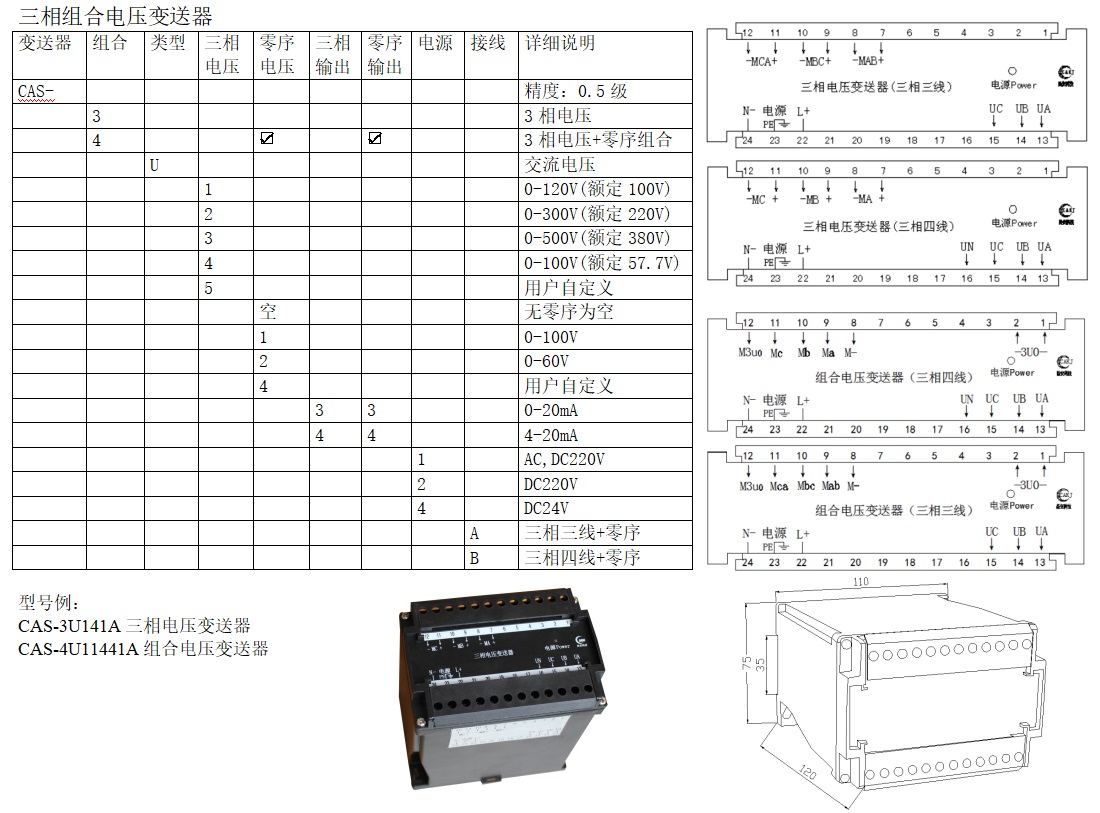 CAS-U141交流電壓變送器是將被測交流電壓信號(hào)轉(zhuǎn)換成按線性比例輸出直流電流并隔離的設(shè)備,配以相應(yīng)的指示儀表或裝置是電力系統(tǒng)、遠(yuǎn)動(dòng)裝置、自動(dòng)化控制系統(tǒng)等必需的模擬量采集模塊。