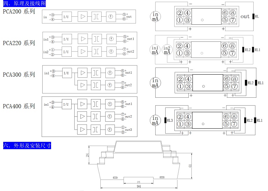 PCA200系列無源直流信號隔離模塊(安全柵),以被測直流電流信號作為能源,并電磁隔離轉(zhuǎn)換成按線性比例輸出直流信號的模塊。