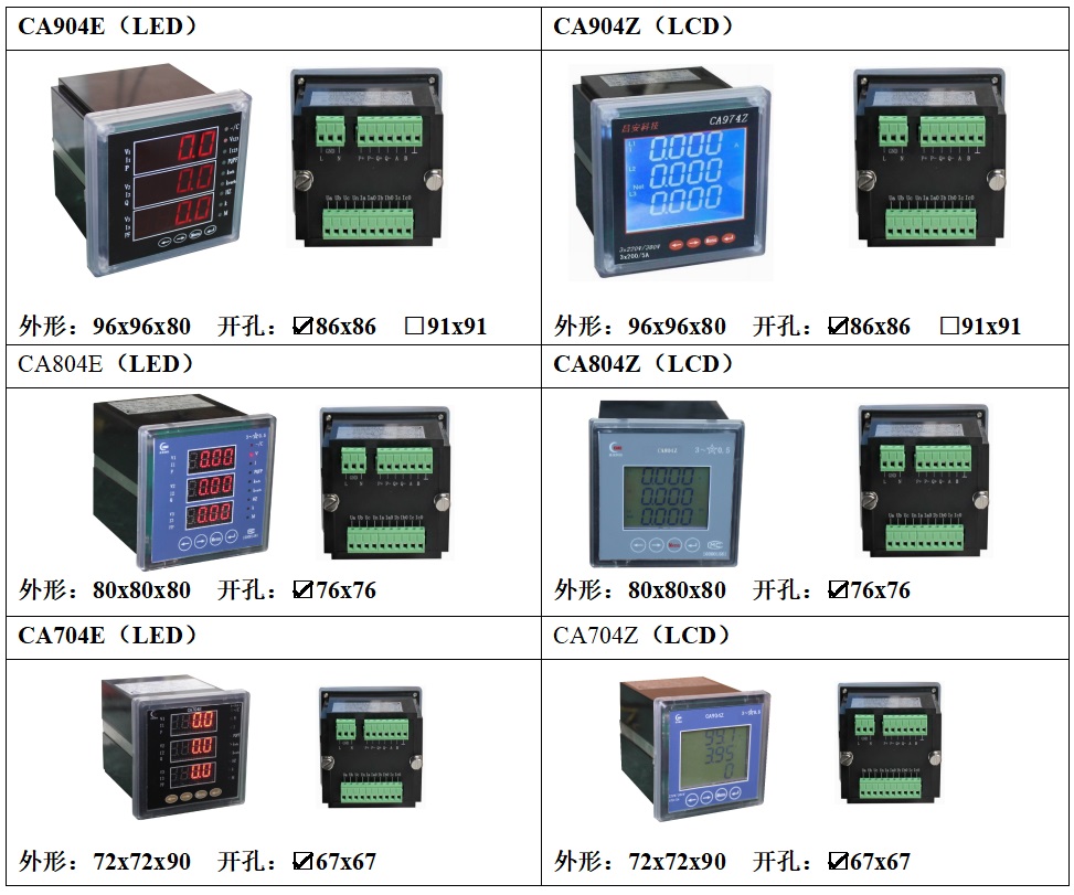 CA900E系列產(chǎn)品是一種具有可編程測(cè)量、顯示、數(shù)字通訊和電能脈沖變送輸出等功能的多功能智能電表,能夠完成電量測(cè)量、電能計(jì)量、數(shù)據(jù)顯示、采集及傳輸,可廣泛應(yīng)用變電站自動(dòng)化、配電自動(dòng)化、智能建筑、企業(yè)內(nèi)部電能測(cè)量、管理、考核。測(cè)量精度為0.5級(jí),實(shí)現(xiàn)LED現(xiàn)場(chǎng)顯示和遠(yuǎn)程RS-485數(shù)字接口通訊、采用MODBUS通訊協(xié)議。